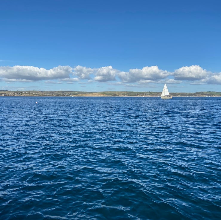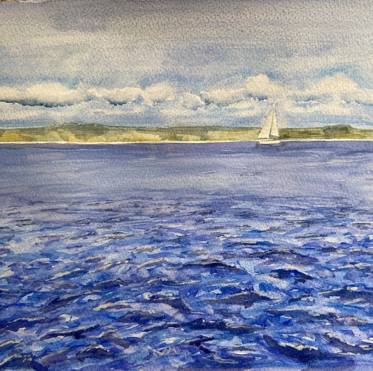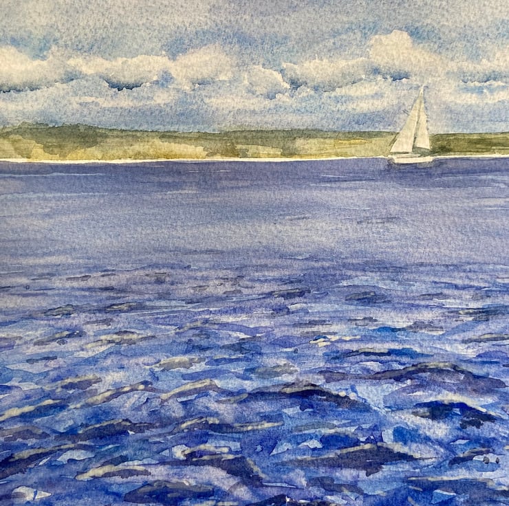 Original watercolour of the view of Sandbanks from Shell Bay. The "Bramble Bush Bay" chain ferry crosses the entrance to Poole Harbour. A3 in size (297cm x 410cm). Sold without mount or frame