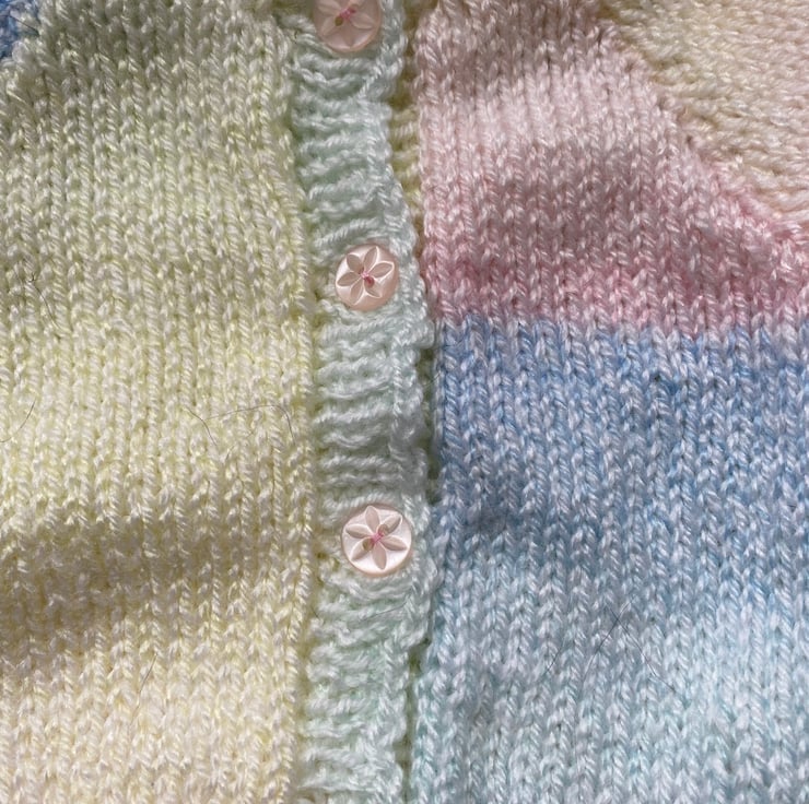 The colours of this yarn were so pretty and gentle, and I loved the way they knitted up to create a unique cardigan.