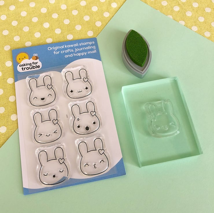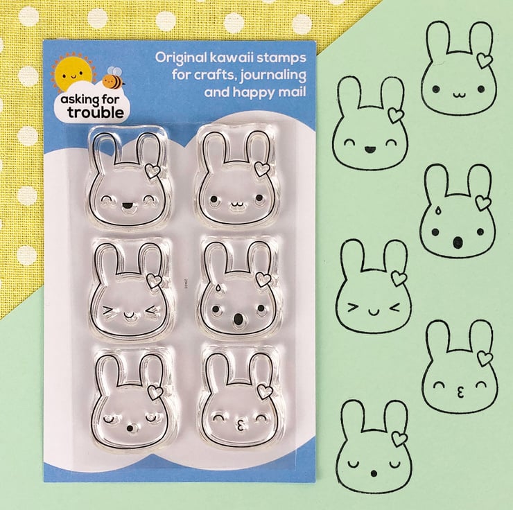 These cute bunny rabbits are perfect for sharing your emotions in journaling and crafts, and for happy mail and pen pals. There are 6 stamps in the set that - like emojis - can be interpreted in a few ways. I see happy, excited, sleepy, shocked, love and joy.