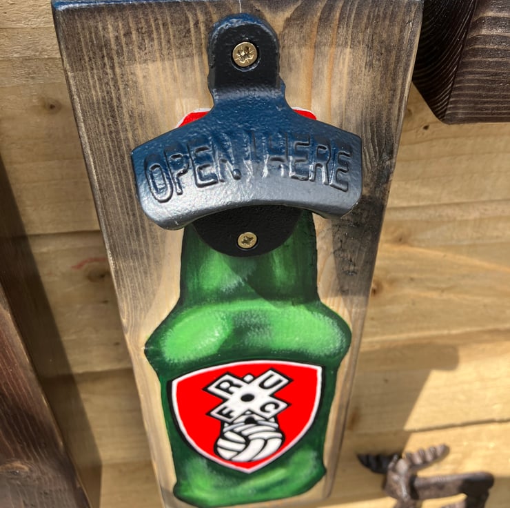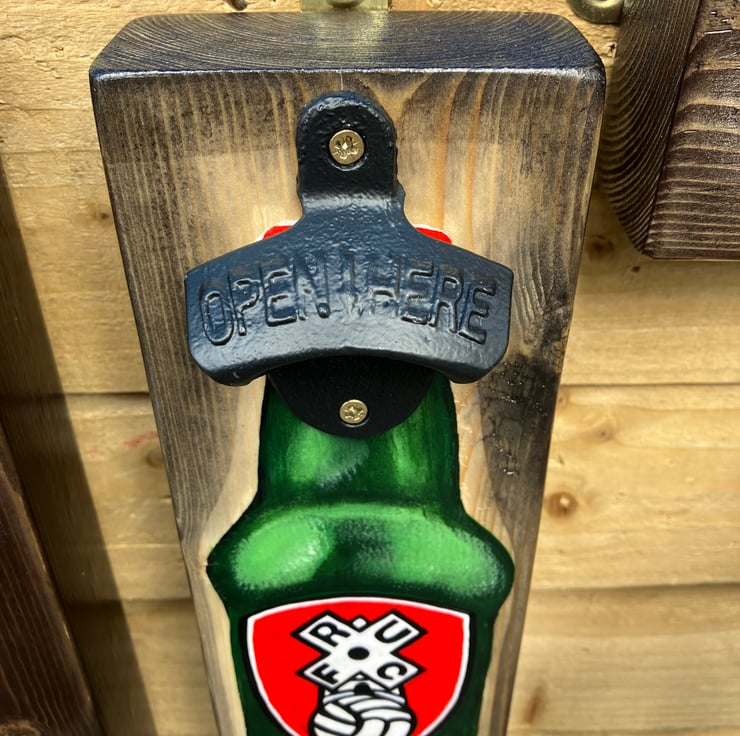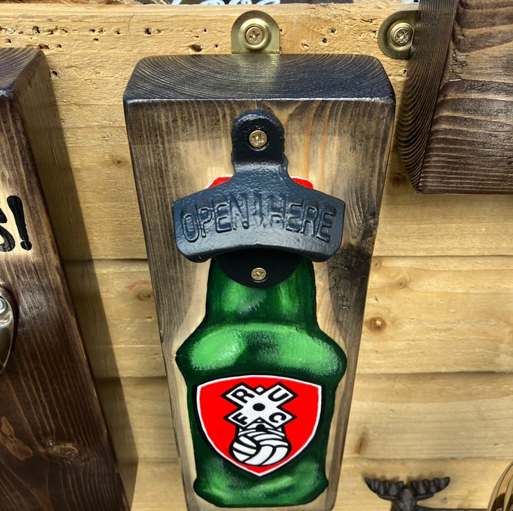 Each Bottle Opener is hand crafted from solid heavy wood.