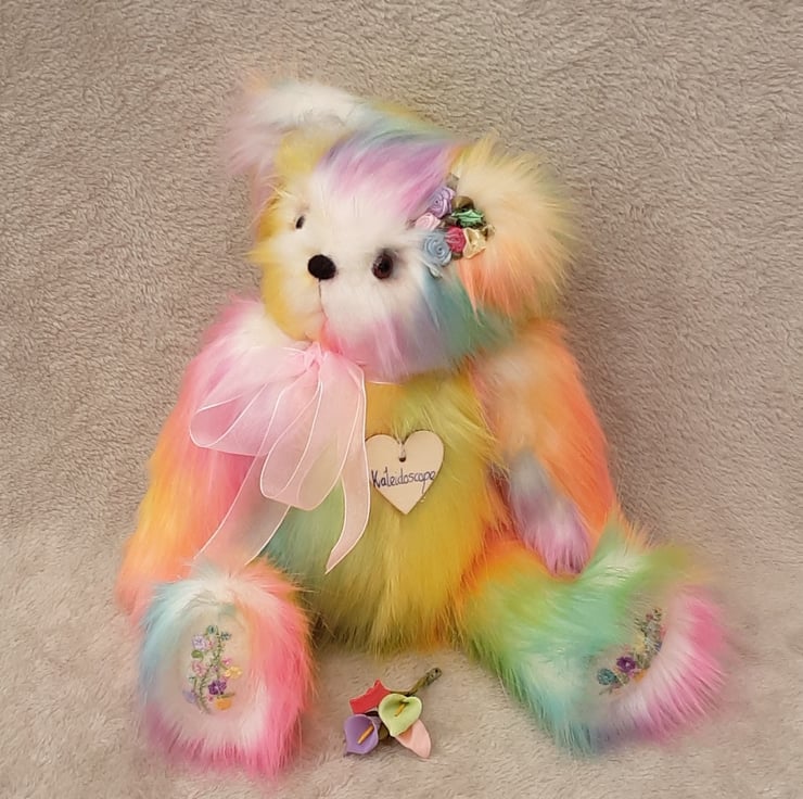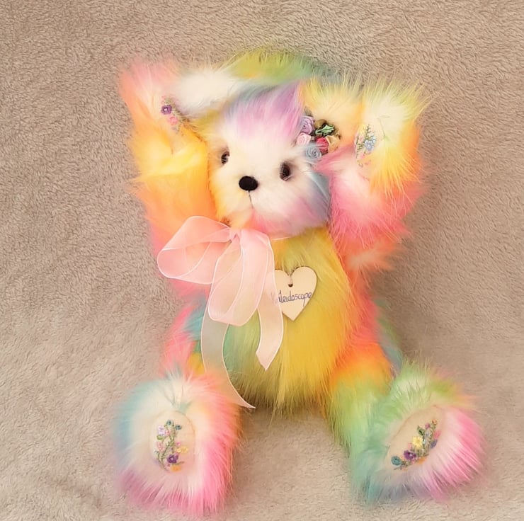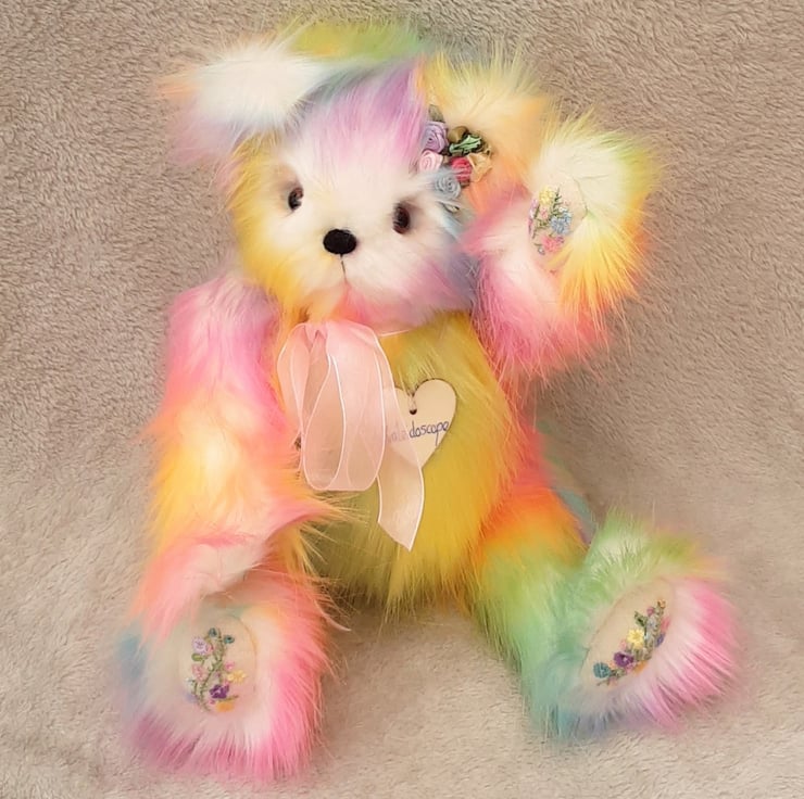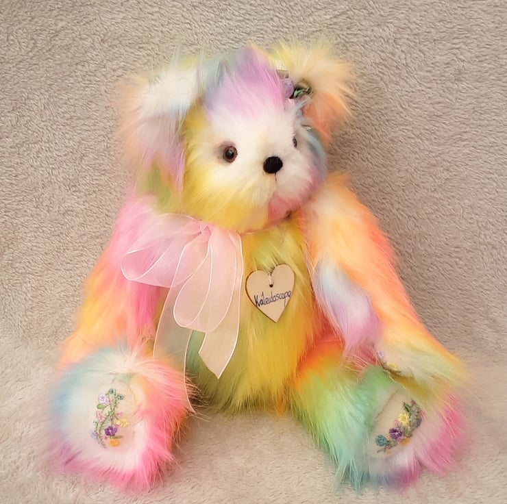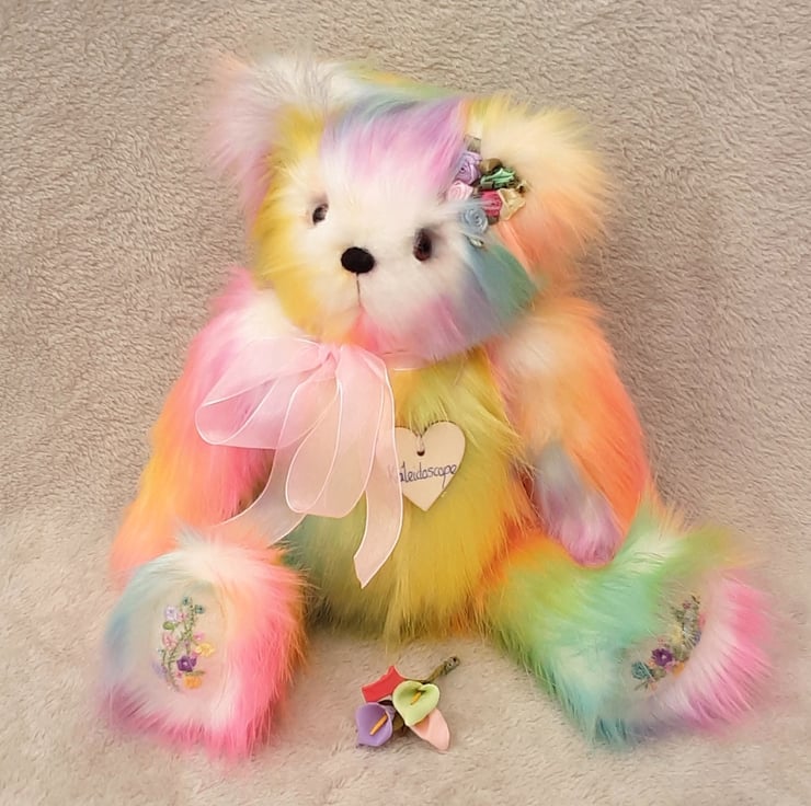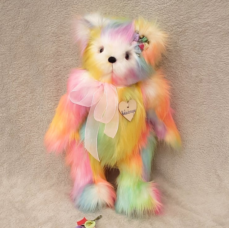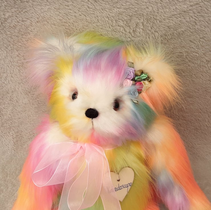 Kaleidescope, a large luxury one of a kind collectable rainbow bear designed and created by myself for Bearlescent.