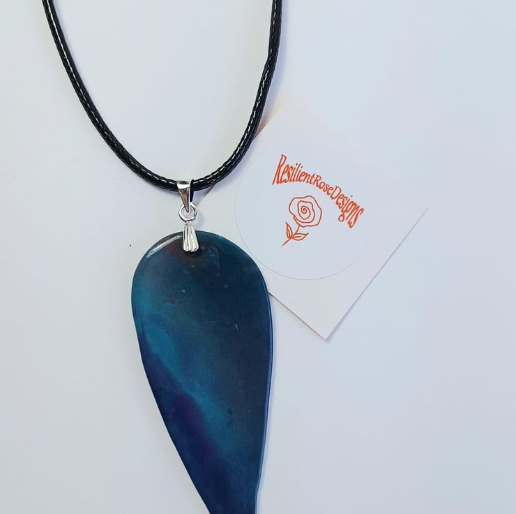 This unique large teardrop pendant was handmade from a special blend of polymer clay. It is a one of a kind item. It comes with a 20 inch black waxed cotton cord and extender chain. This pendant is ready to post.