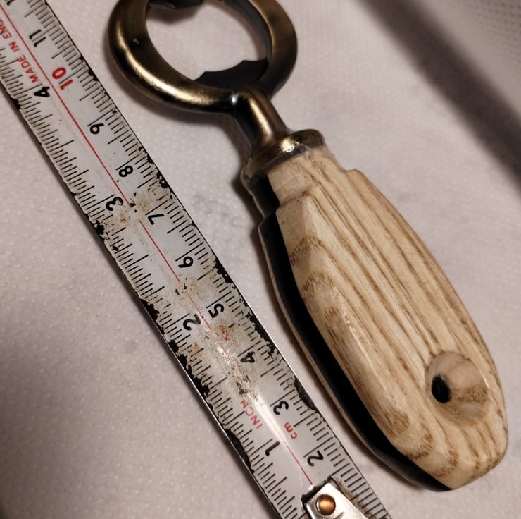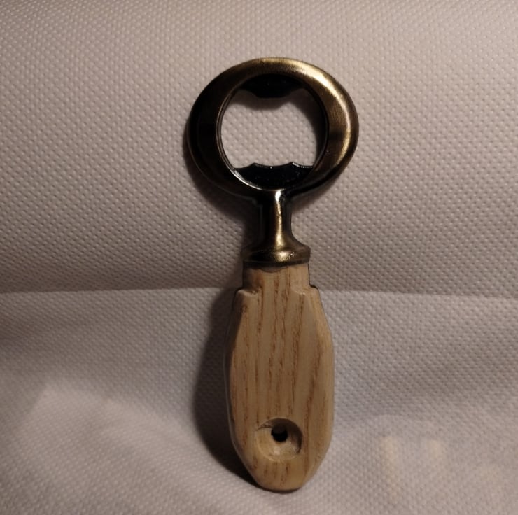 A few years ago I made a guitar and there was some ebony left over, which I glued to some ash.... this week I finally turned it into a bottle opener...using a kit from axminster...it has been sealed with "chestnut acrylic sanding sealer" then polished with carnauba wax.... it has a hole so a piece of cord could be used to hang it in a readily accessable place.... (the wood was joined to the bottle opener with "araldite epoxy glue", so should last forever....)