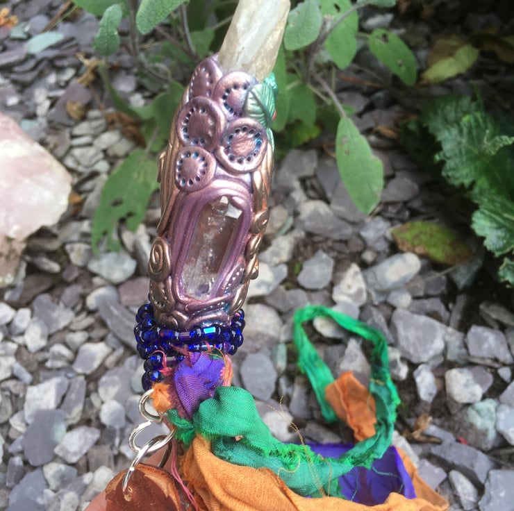 Quartz wand, crystal wands, wood wand, witchy gifts, witch tools, fimo clay wand
