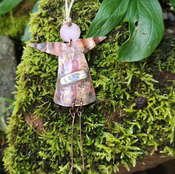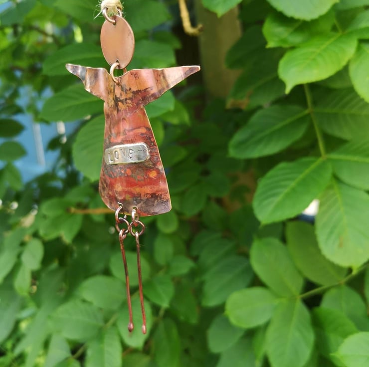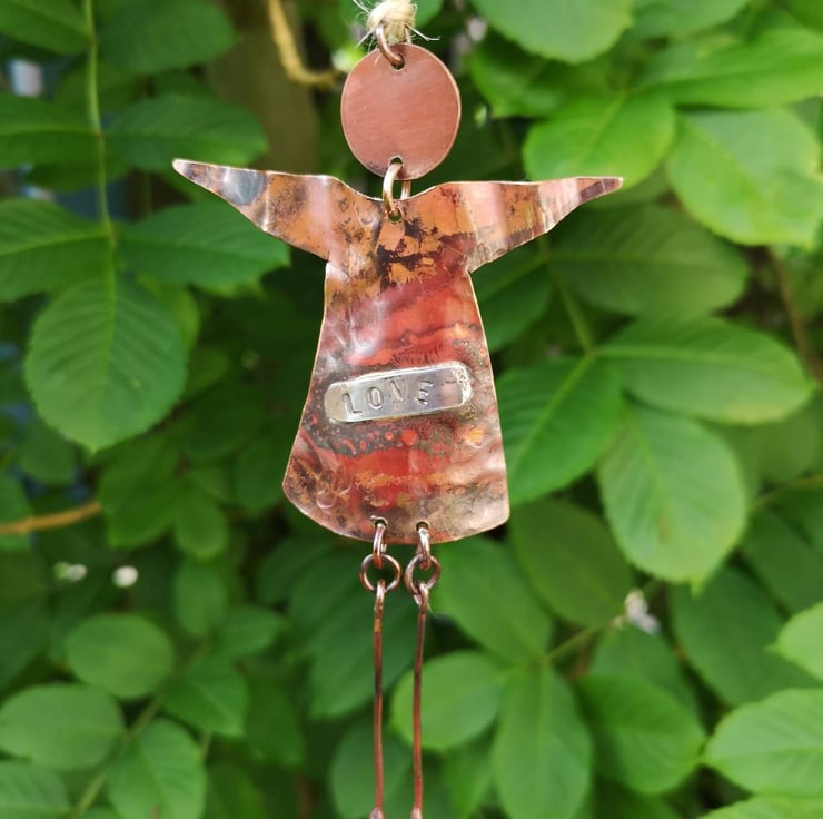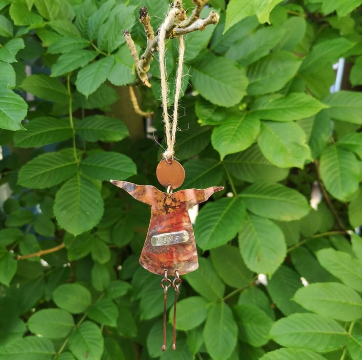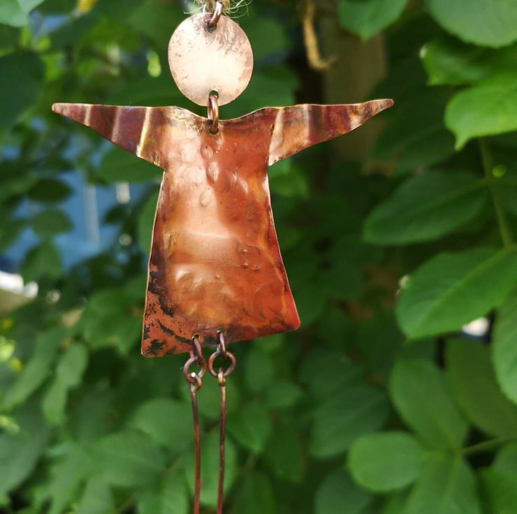 This beautiful handmade oxidized hanging copper angel is a perfect gift for someone you love. Made with high-quality copper and silver, this whimsical angel is crafted with precision and care. It is a perfect decoration item for any occasion, whether it's a birthday, Christmas or any other special moment. The angel is designed to bring love and joy to its owner and is a great way to show someone how much you care.