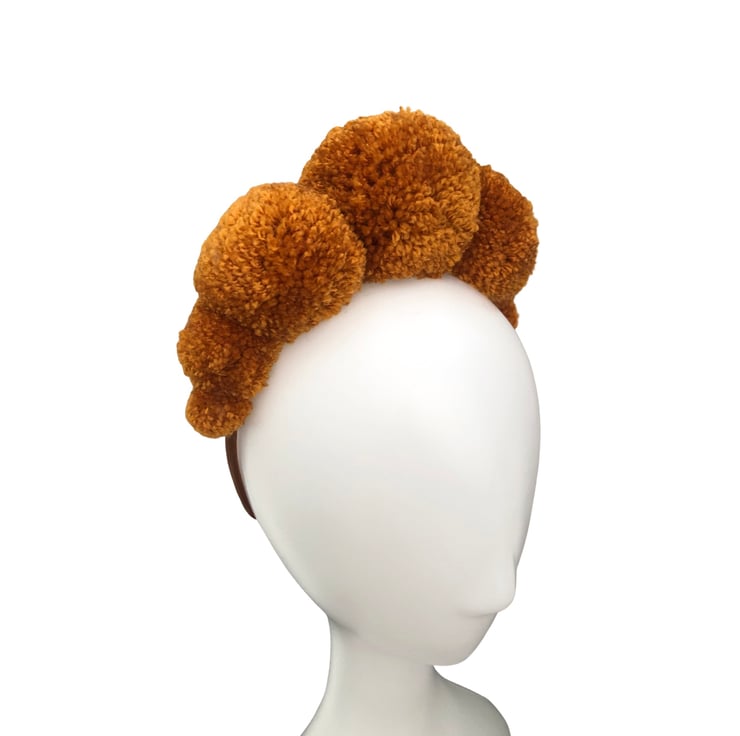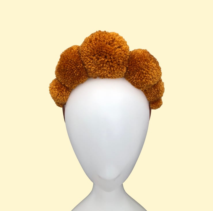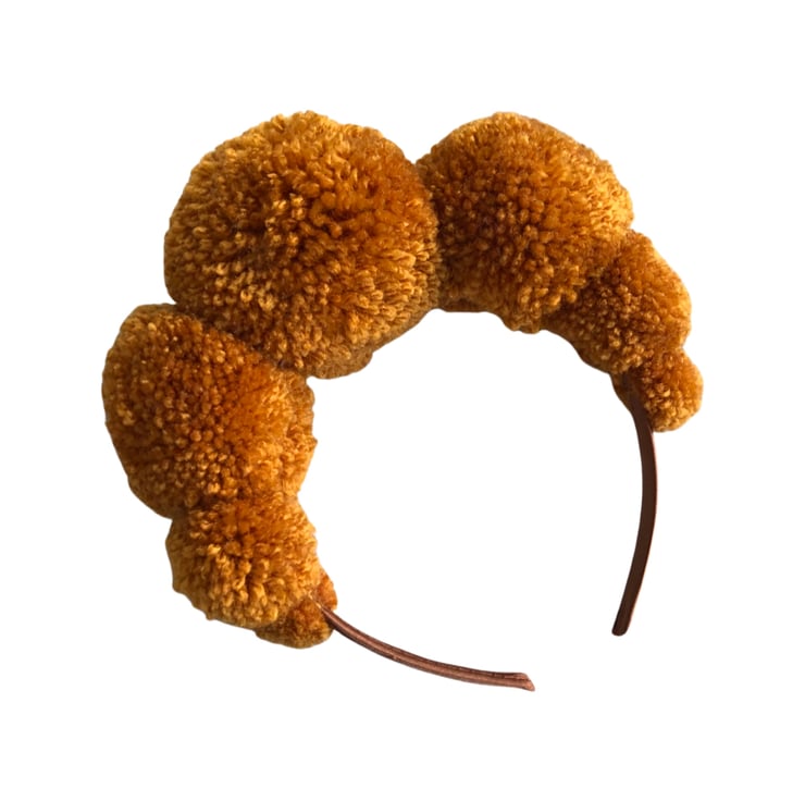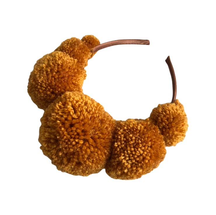 Introducing our party pom pom headband in mustard colour, a delightful party and festival accessory that effortlessly combines style and comfort. Each headpiece is a unique piece of wearable art.