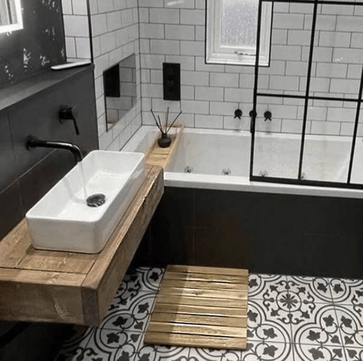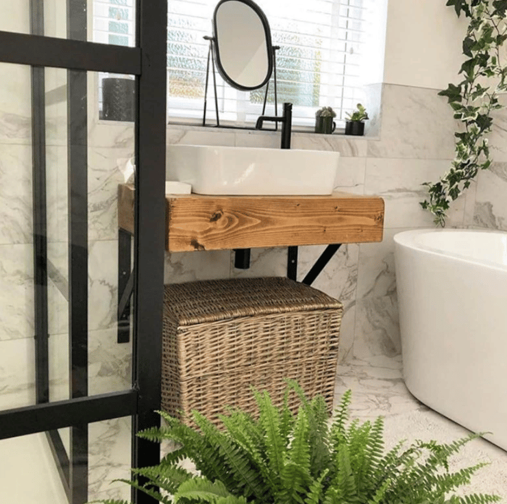 The Rustic Floating shelf wash stand is hand crafted in solid 50mm thick beams to give the unique rustic look.