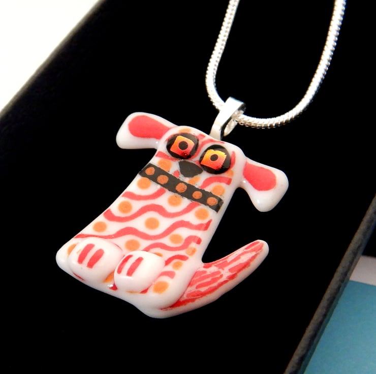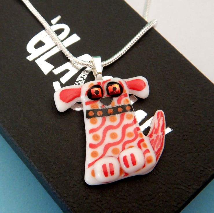 Unique and original handmade fused glass 'Dog' pendant.