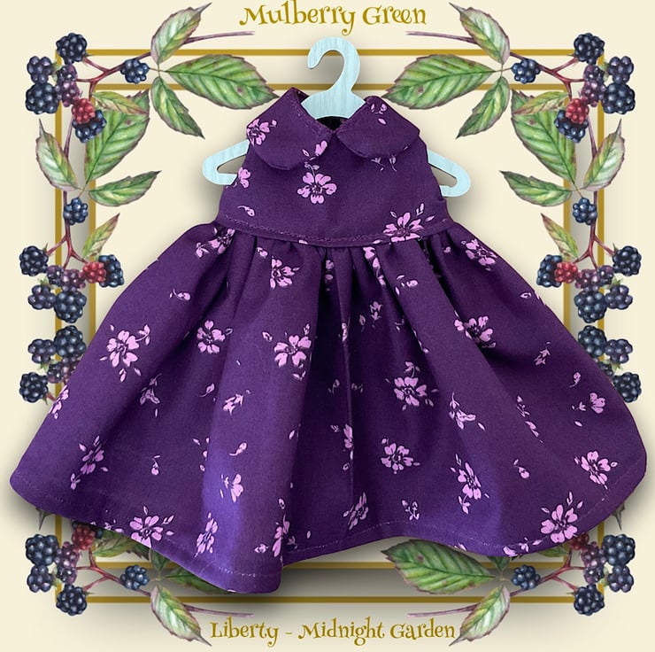 A beautiful dress in Liberty Midnight Garden fabric to fit the Mulberry Green characters. The dress is made from best quality cotton and has a full skirt and a lined bodice.