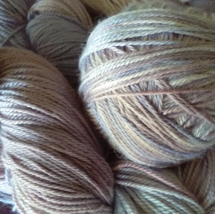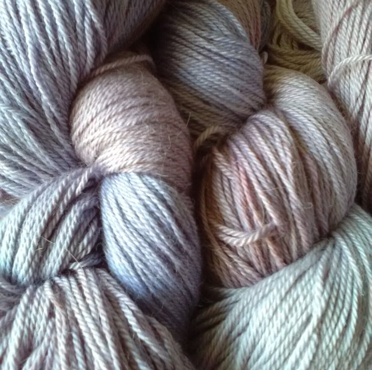 This hand dyed Alpaca and Silk blend is just lovely. The sheen of the silk makes this a very special yarn suitable for baby items, socks and shawls.