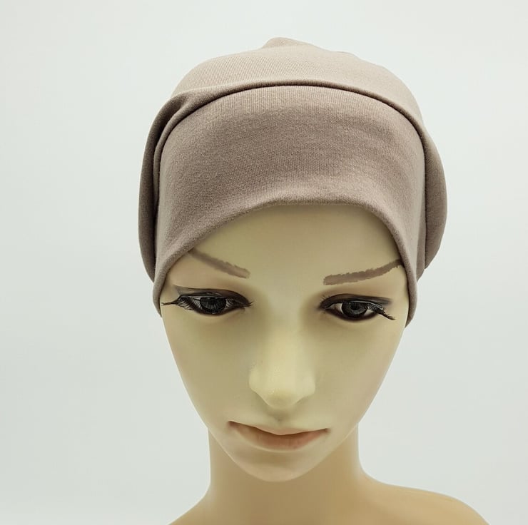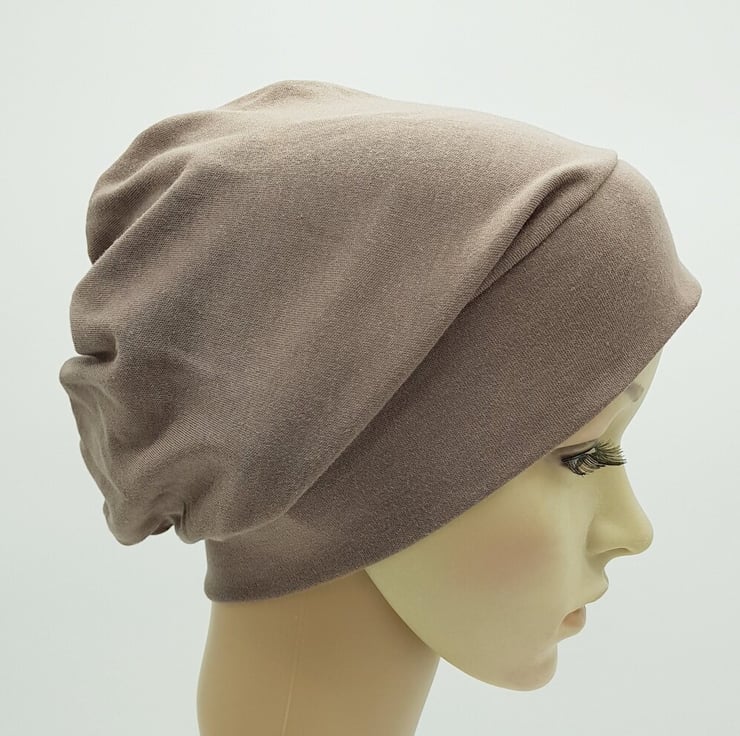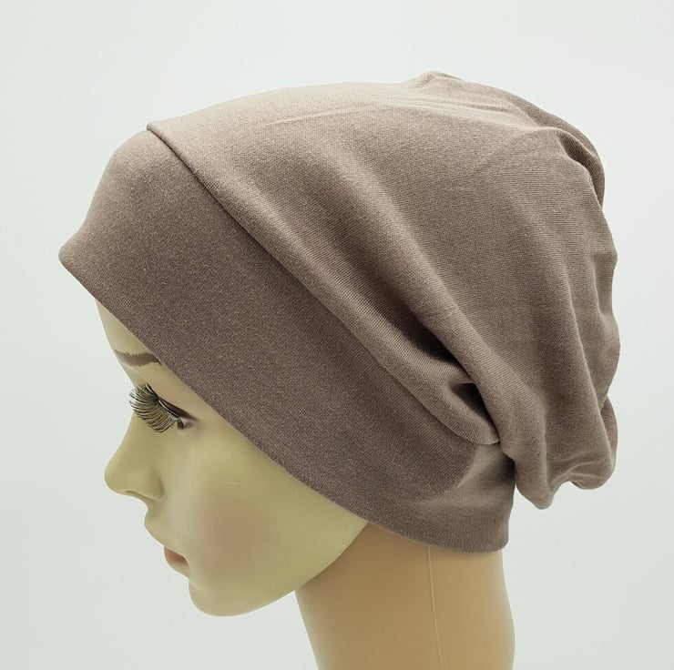 Lightweight cotton jersey beanie brown hat, chemo head wear .