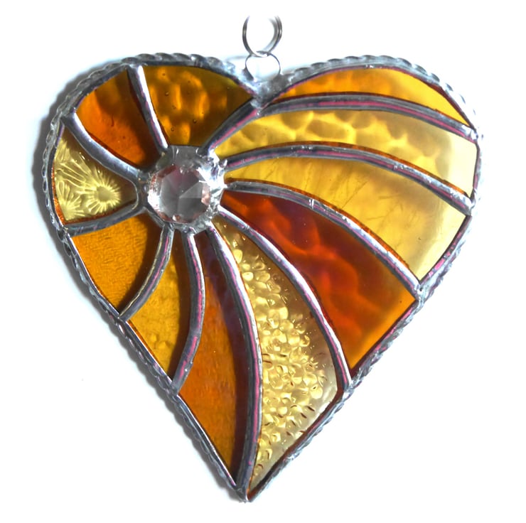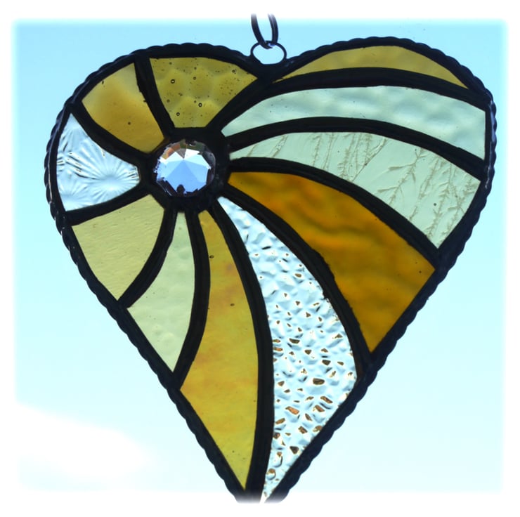 I've made the heart from all different types and shades of golden glass swirling out from a lovely gsparkling crystal.