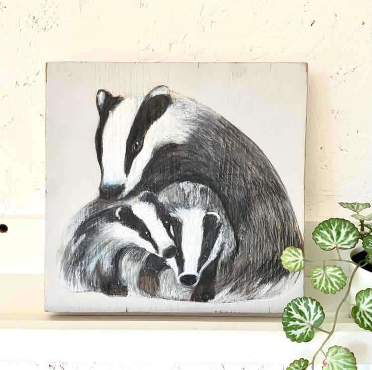 This little sleepy dormouse has been painted using soft pastel and acrylic on an off cut off an old scaffolding plank. It is a perfectly imperfect piece of wood with lots of lovely marks and cracks. The painting has been sealed and can be stood on a shelf or hung on the wall.