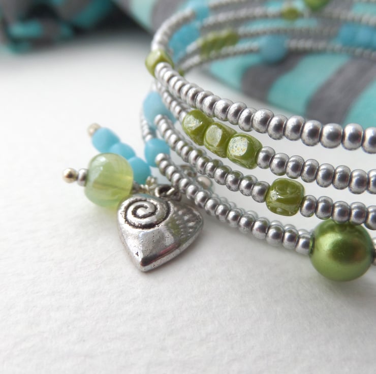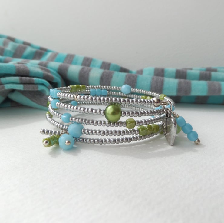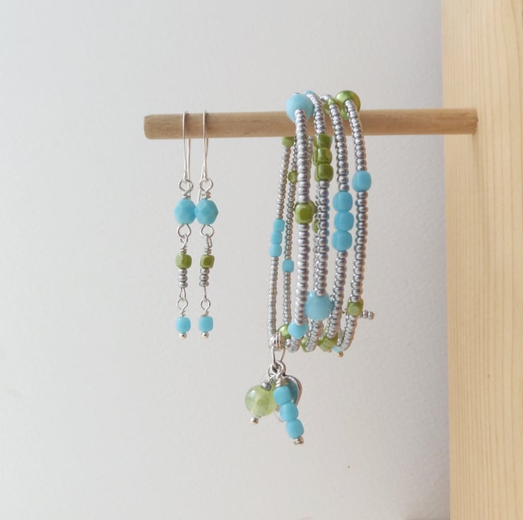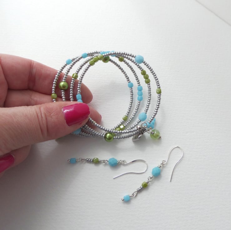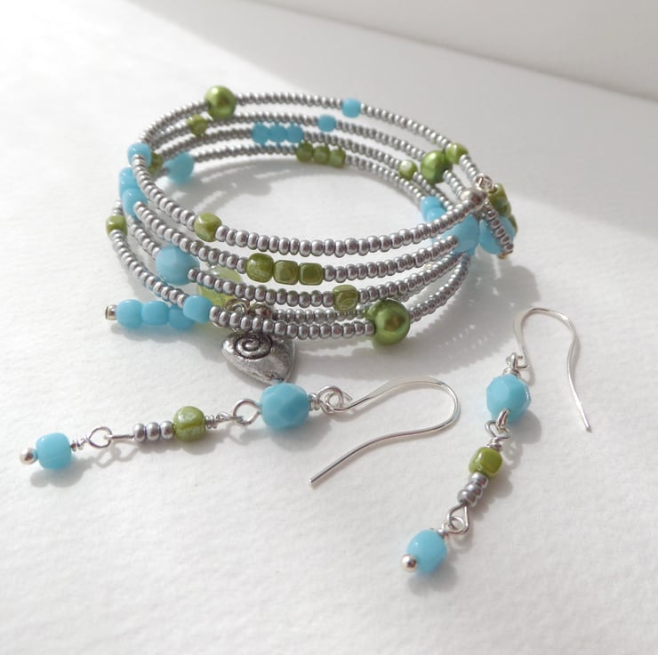 One off - pretty summery bangle with matching dangle earrings