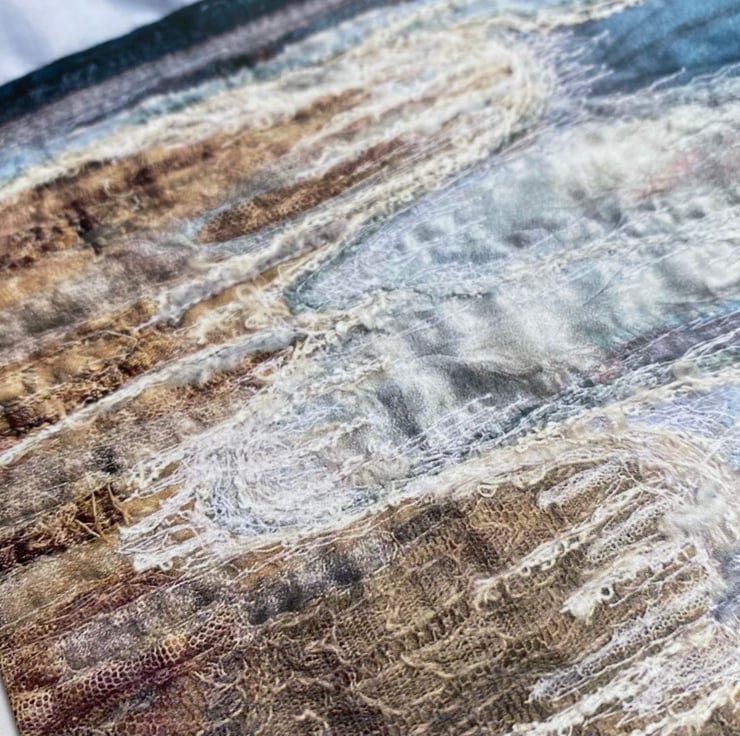 This card is a print of one of my felted pieces with free motion embroidery. This one is the beach at Saltburn-by-the-Sea. It’s ideal for any occasion. The card measures 12.5 x 18cm and it comes with a white envelop in a plastic cover for protection.