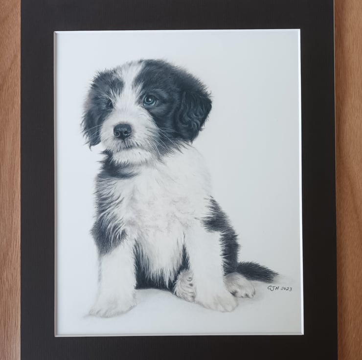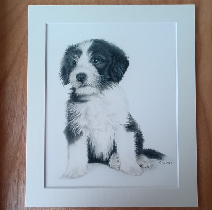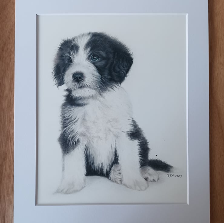 A Print of my Original Coloured Pencil Drawing of A Bearded Collie Puppy.