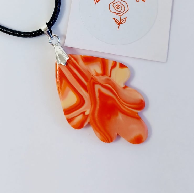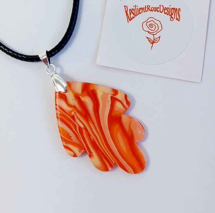 These orange marble effect polymer clay pendants were made from a special blend of clay. There are only two of these pendants available and because of the nature of the marble effect, each one is unique. Each pendant comes with a 20 inch black waxed cotton cord which also has an extender chain, allowing the wearer to adjust the length if required, These pendants are unique and are ready to post. You will receive 1 necklace per order.
