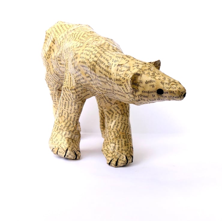 I started making paper polar bears from recycled vintage books to decorate out Christmas mantelpiece