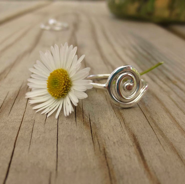 I really enjoy making these. Spirals are such an ancient symbol in art from all over the world, they really do look great on a ring.