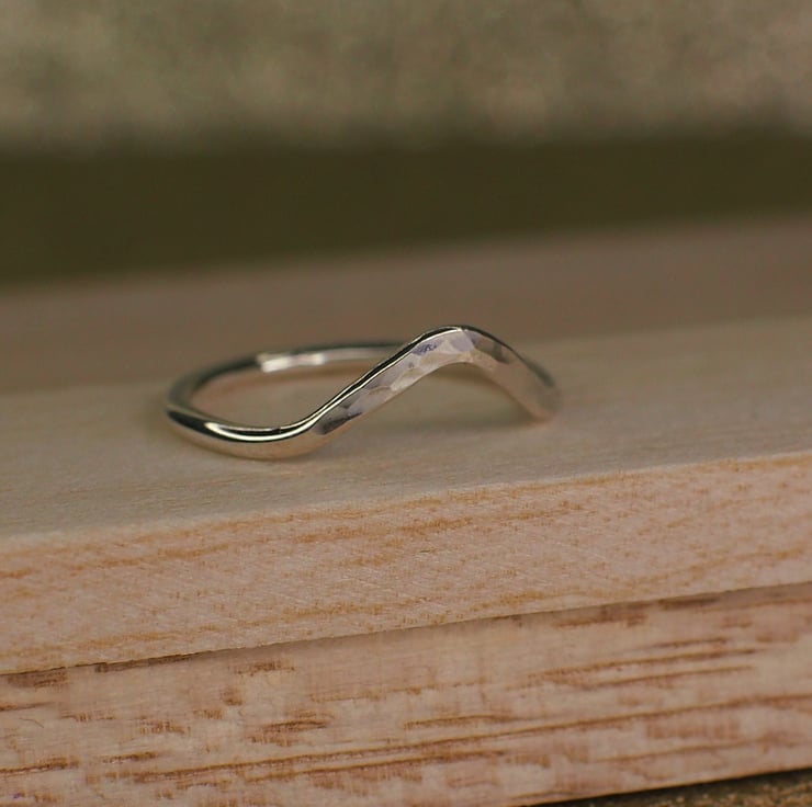 Wish bone rings are an absolute classic - this one has a hand made twist in the hammered finish, and looks great on its own or framing a solitaire ring.