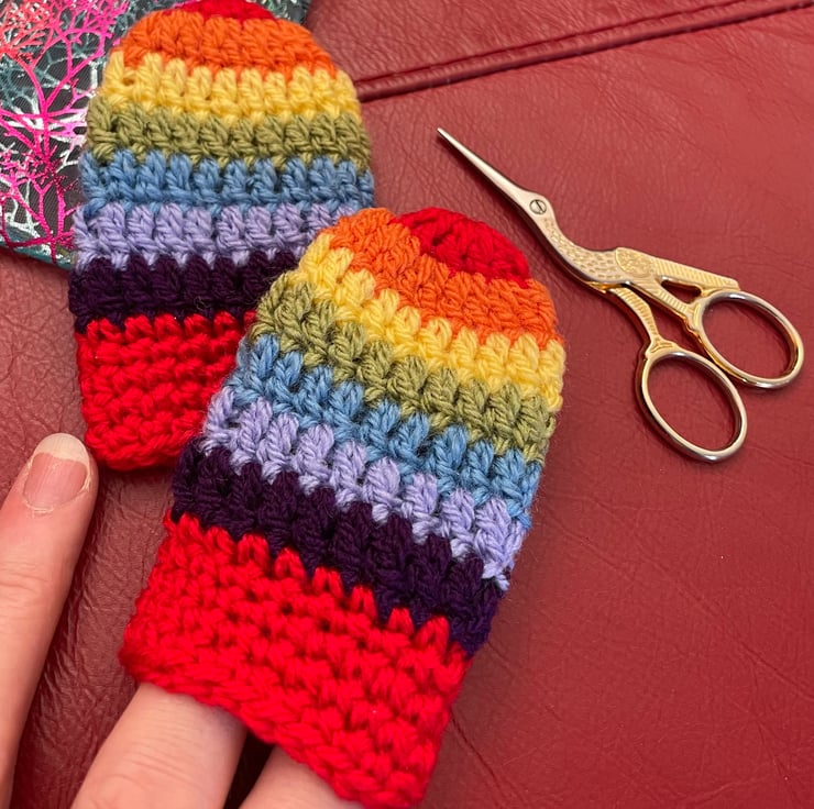 Baby mittens, crocheted in rainbow striped pattern. Ideal gift for baby. Brighten up a dull day, keep little fingers warm.