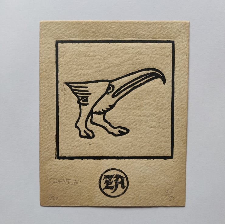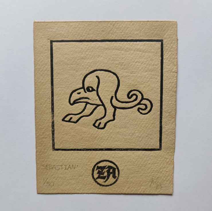 These woodcut prints are inspired by marginalia, small illustrations found in medieval books.