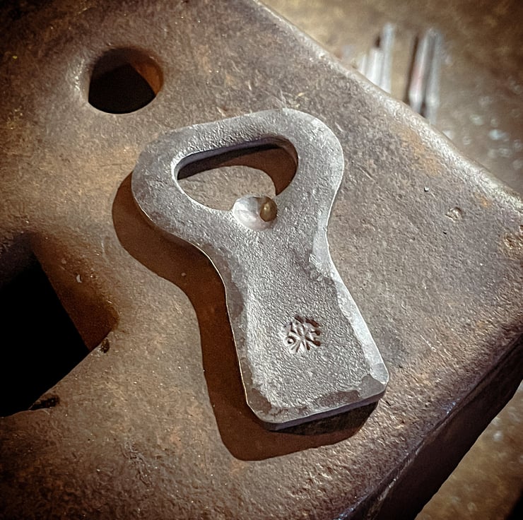 Open your beers with this simple and satisfying chunky bottle opener. Hand forged from a single strip of 306 mild steel and finished with wax to give a tough, durable patina. Each item is handmade to order so is unique to you. Please allow up to a week for production!