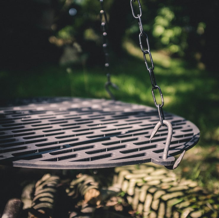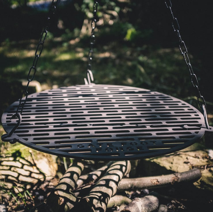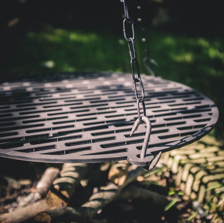 The hanging grill is an add-on product that can be ordered together with my campfire tripod, or will happily hang off most existing tripods.
