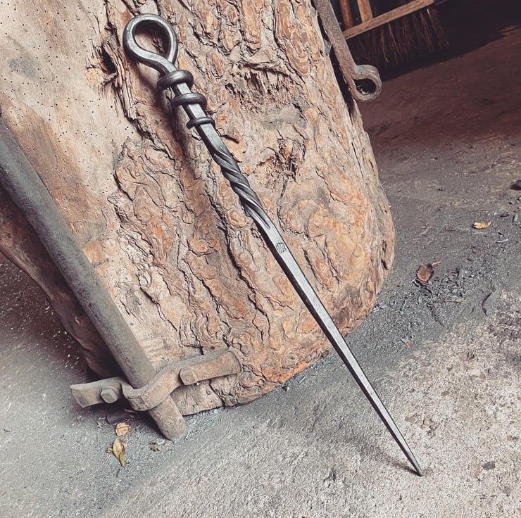 A chunky and solid fire poker, hand forged from 12mm mild steel, with a Mousetail handle and a comfortable rope twist detail to the shaft. Sturdy enough to fettle your fire for generations to come. Finished in wax to protect the surface.
