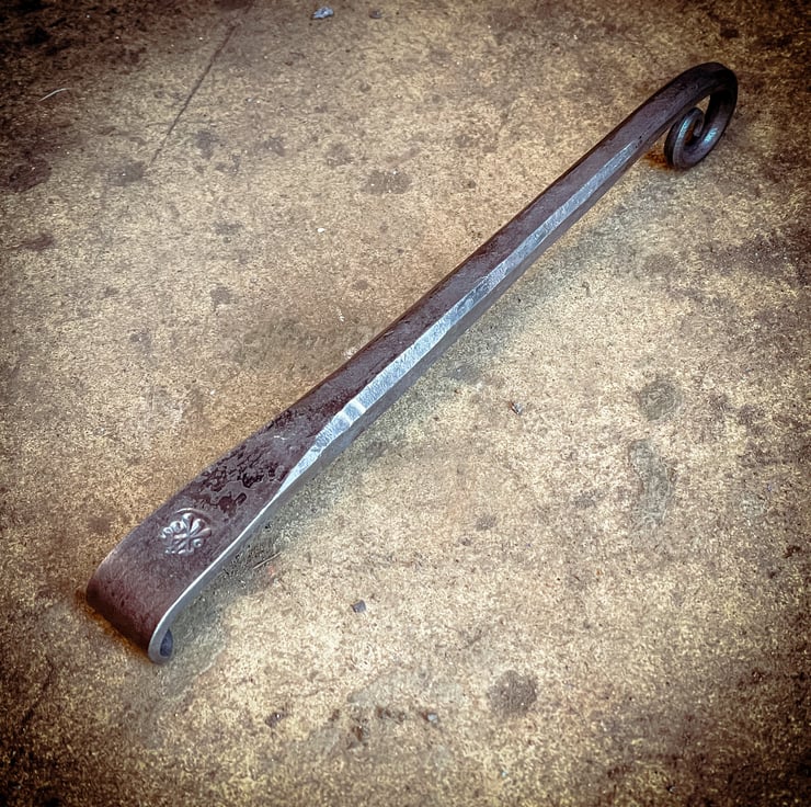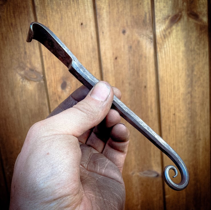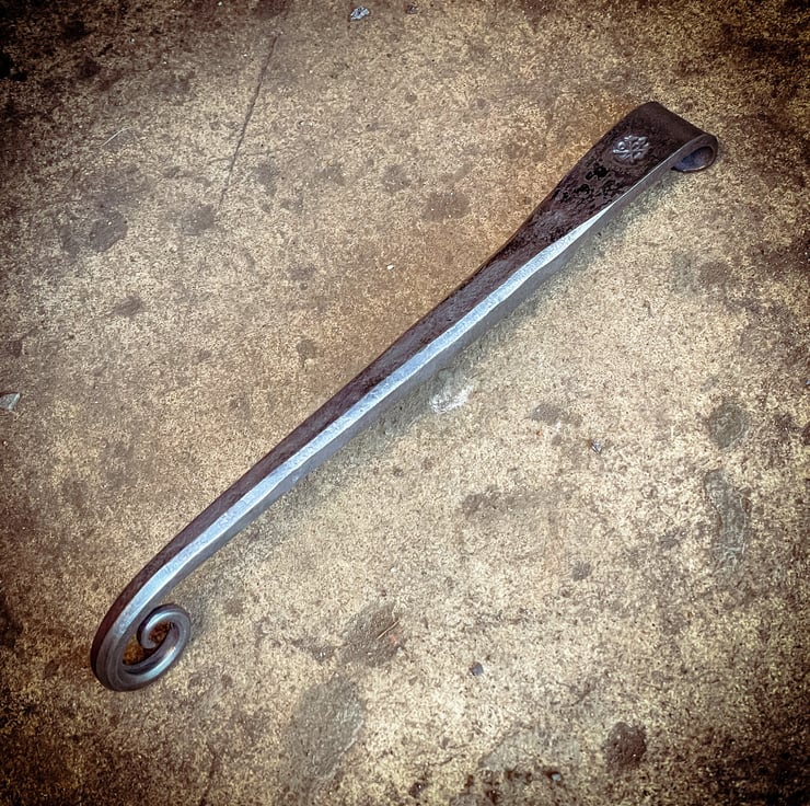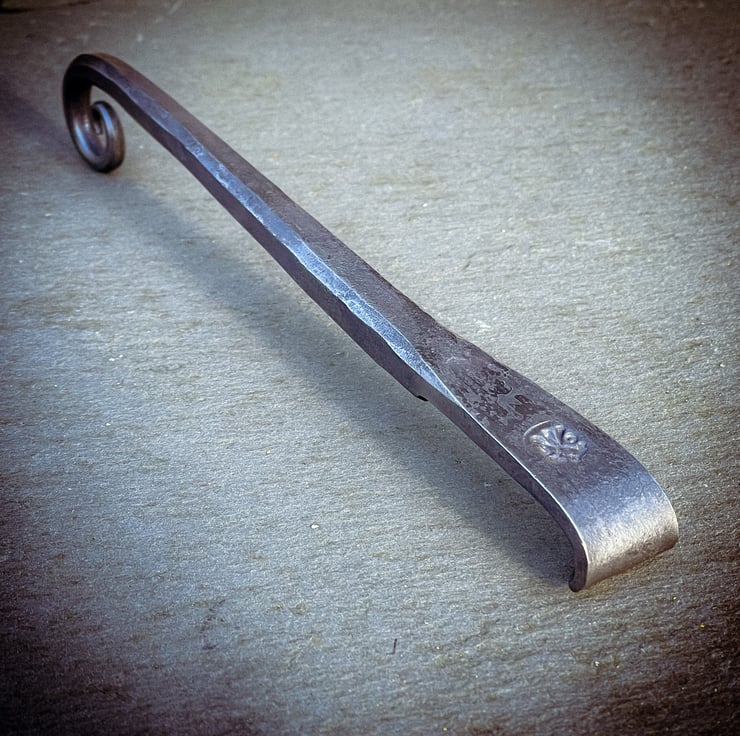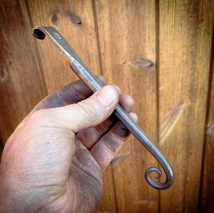 This elegant bottle opener features a simple lever action and an elegant scroll to the end of the handle. Hand forged from 12mm mild steel and finished with wax to give a tough, durable patina. Each item is handmade to order so is unique to you. Please allow up to a week for production!