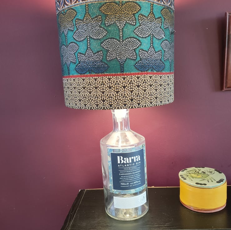 This Barra Gin bottle has now been discontinued and the fabric is stunning and makes a fabulous lampshade.