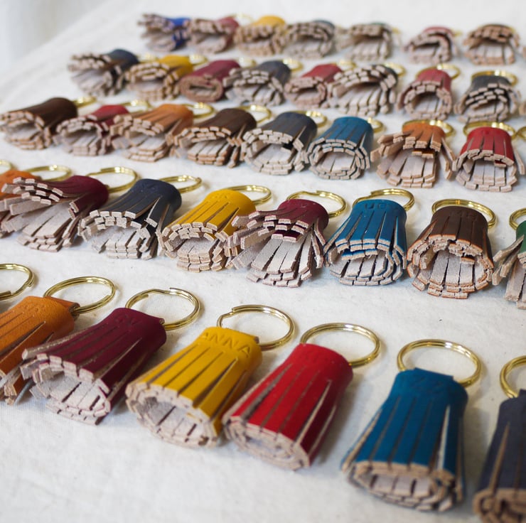 Make your keys stand out, or accessorise your bag with this tassel key ring. Tassel made from the highest quality veg tan leather, and hand dyed and cut, meaning each tassel is truly individual.