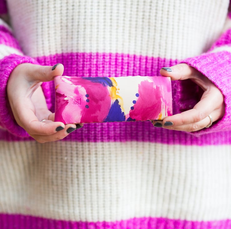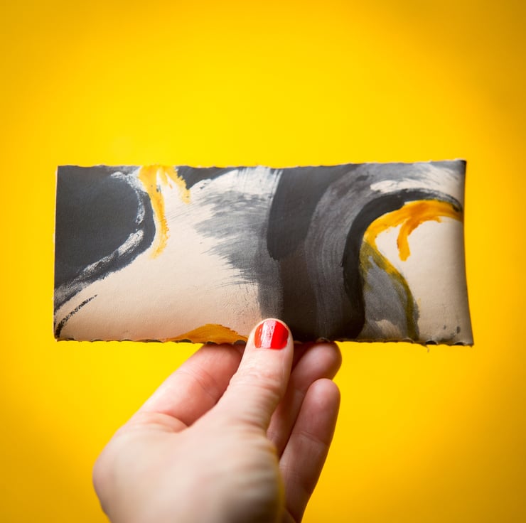Handmade leather purse, in exclusive Brush hand painted print. Each colour way of the brush collection is hand painted, creating unique designs everytime.