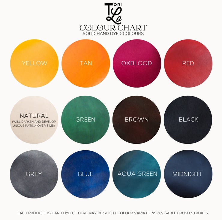 Please note that each and every item is made to order. This means that each item is truly unique and the item you receive may be slightly different to the listing picture, this is due to the natural qualities of the leather and dying techniques used.