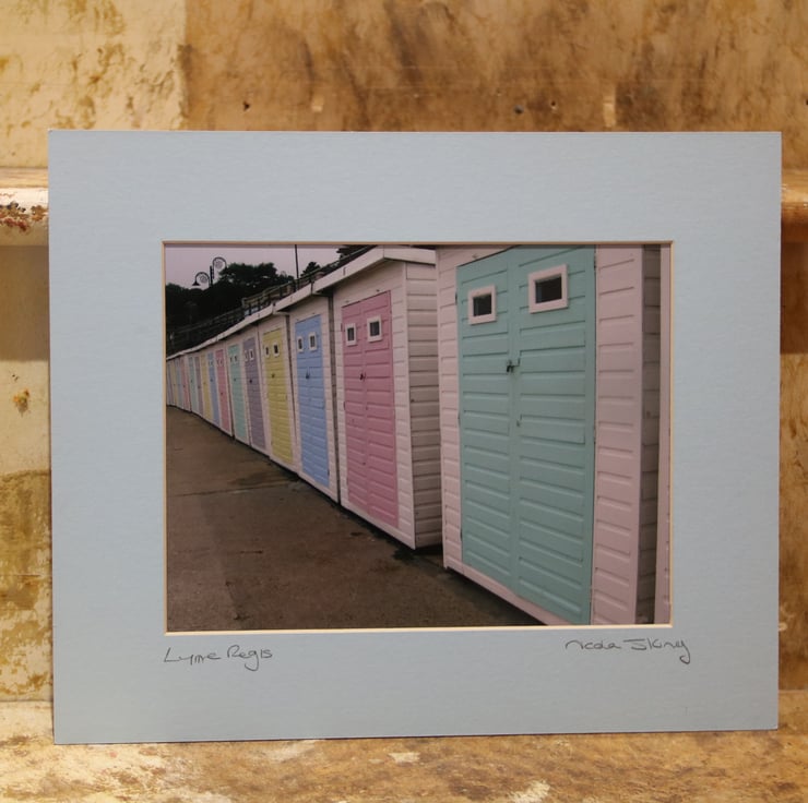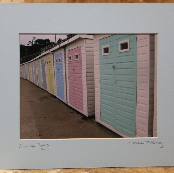 Beach huts, Lyme Regis. Mounted colour photograph, 10" x 12"