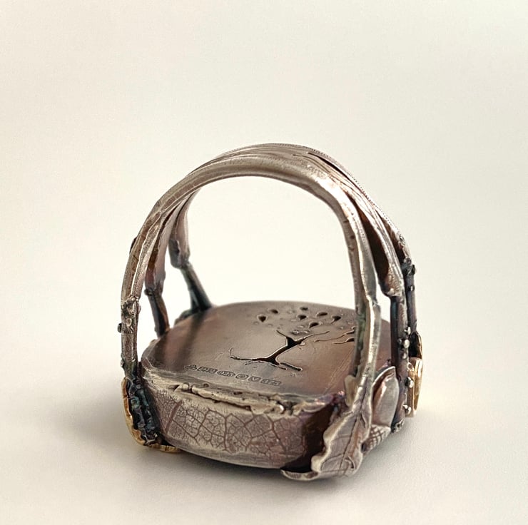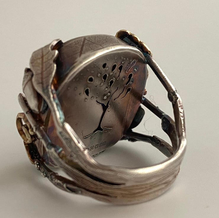 Oxidised Sterling Silver and 9ct Gold Ring heavy silver. Oak leaf and acorn design.