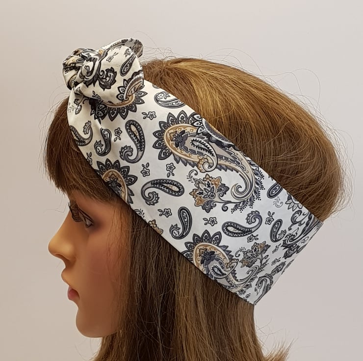 Cotton paisley print headband for ladies and girls, self tie hair scarf.