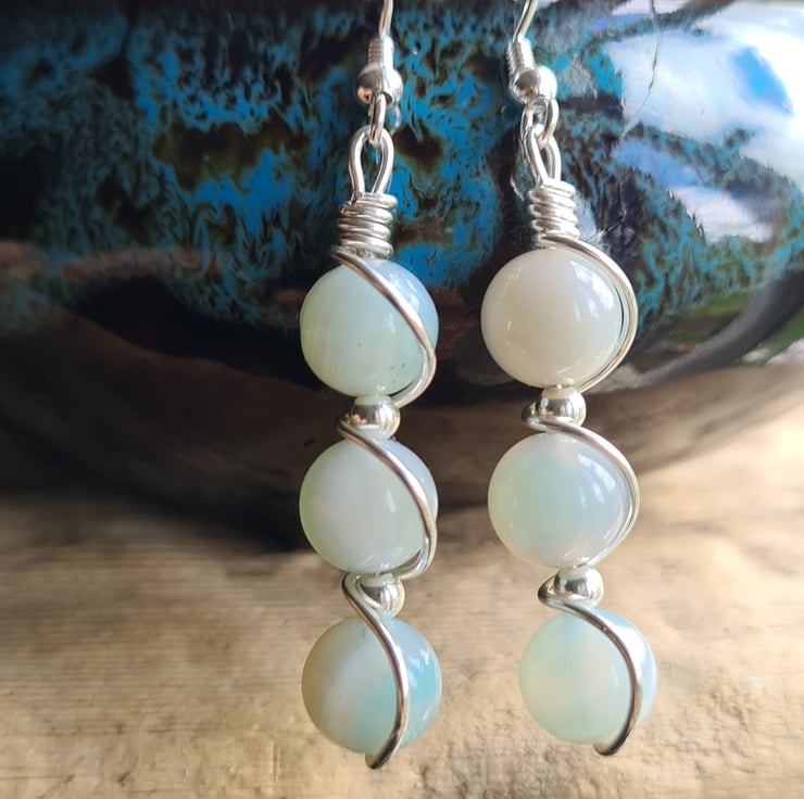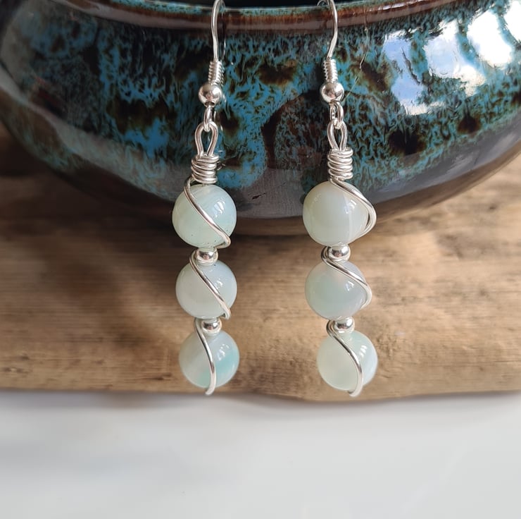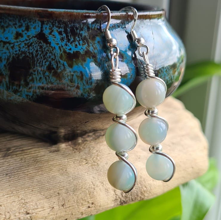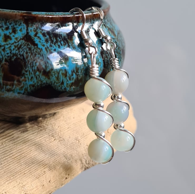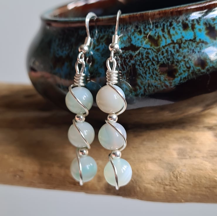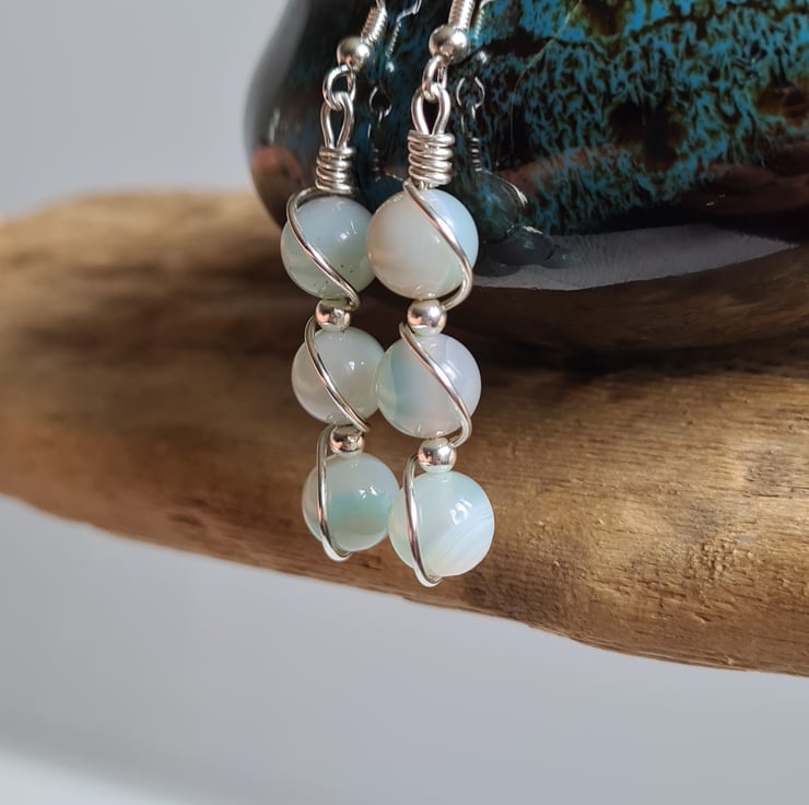 I have wrapped these beautiful top quality Natural Banded Agate & Silver beads in 925 Silver and hung them on 925 Silver ear bars.