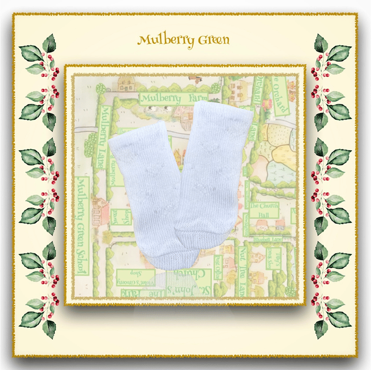 A cute little pair of white heart socks to fit the Mulberry Green characters. The socks look lovely with the little felt shoes.