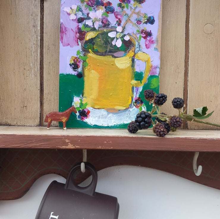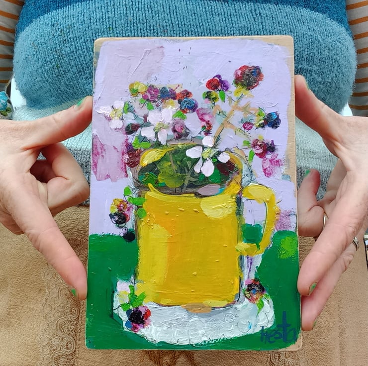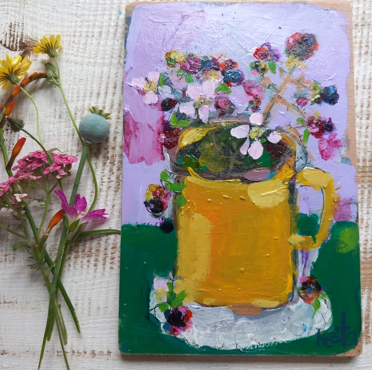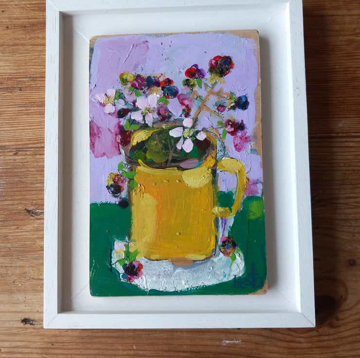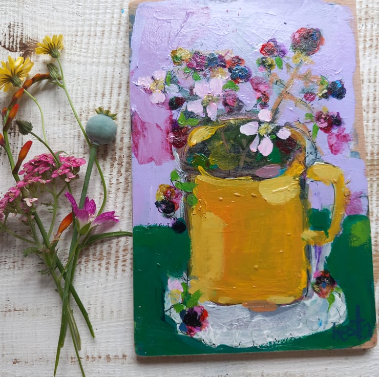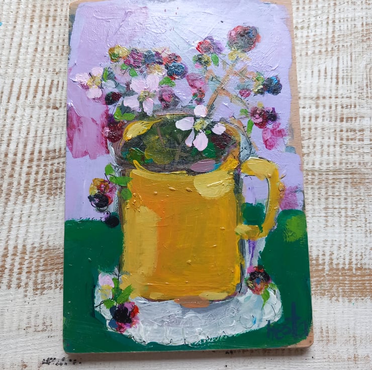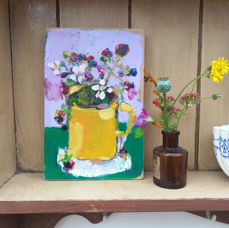 A small painting on reclaimed wood one of a kind. Small but confidently painting in my loose style , giving the feel of each season. Measuring 18 cm tall and 12cm.wide.