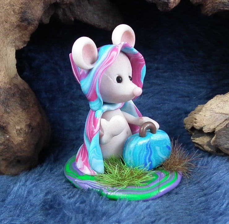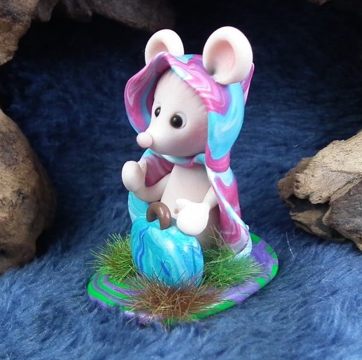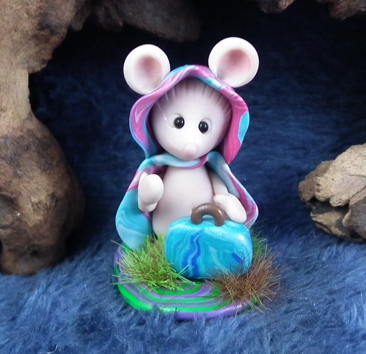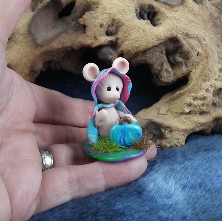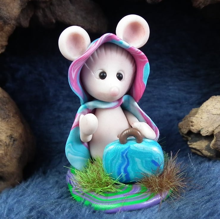 This is a 'one of a kind' creation having been entirely handmade without the use of moulds here at my studio on the Sussex Coast. Modelled with artist blend polymers, blushed before sealing with lacquer, Sofia has sparkling black onyx eyes and is presented on a grassy base. She is not removable. Sofia the JourneyMouse is just one and a half inches tall.
