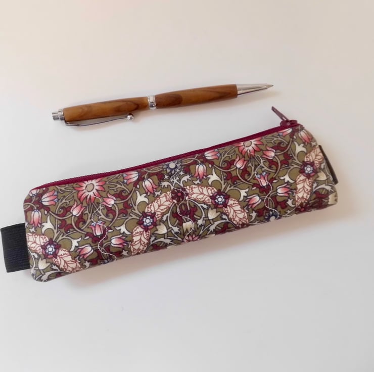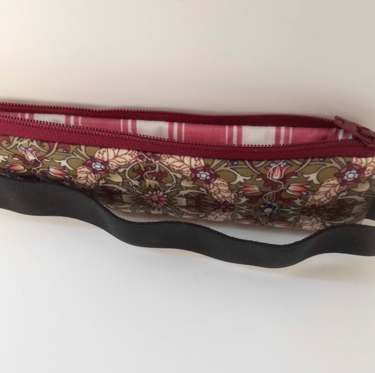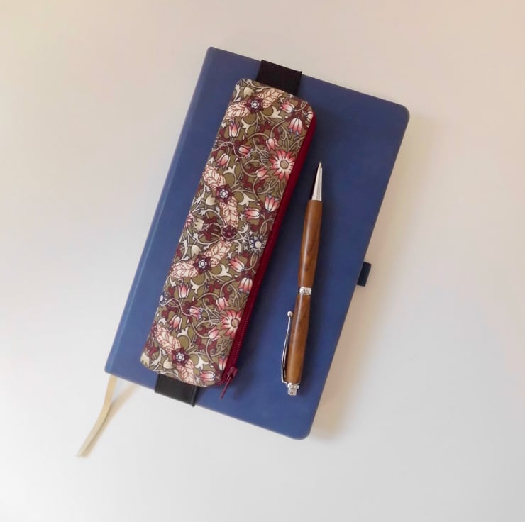 Elasticated pencil case for cover of book diary journal William Morris burgundy