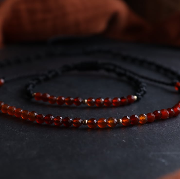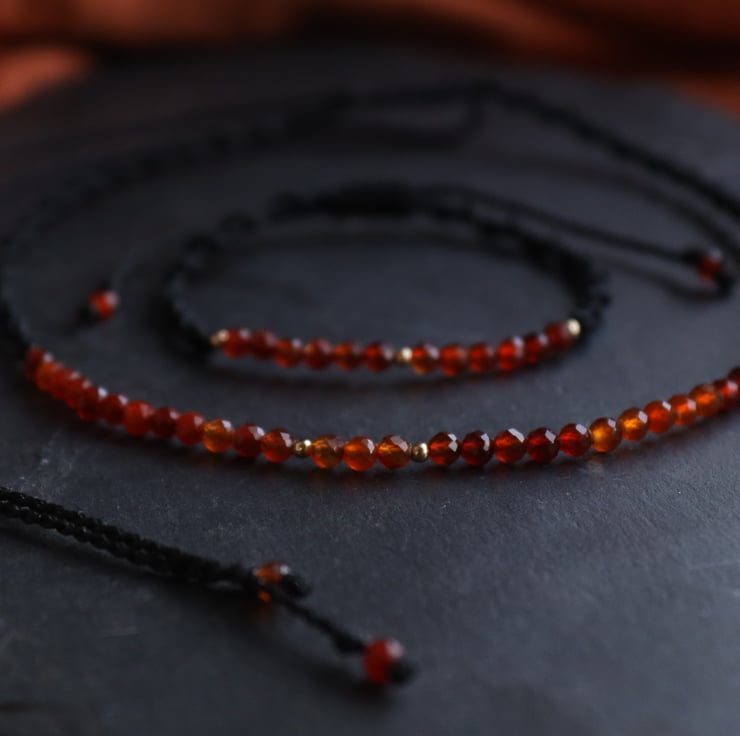 Adjustable bracelet &necklace set with natural stones Carnelian