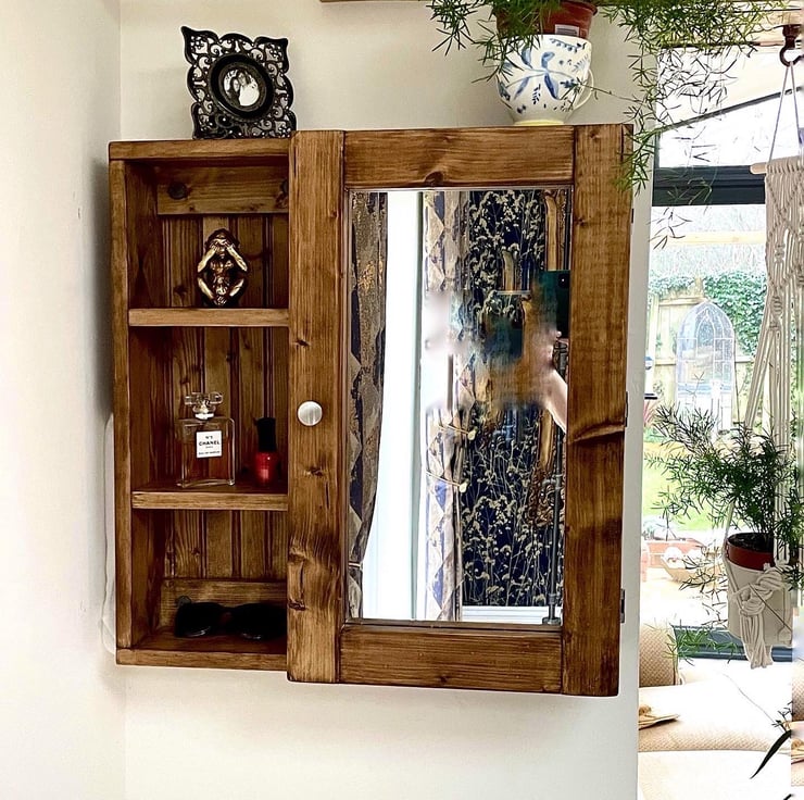 Warm English timbers with natural grains and subtle tones with quirky blemish’s. Every piece handmade to order and has a unique one off look. For you only. The finish is a natural mid oak with beautiful tones and sealed with a tough specialist sealant. That extra piece on the side is a beautiful idea to vamp up a cupboard, so it's no ordinary cabinet. Display the prettier things in life.