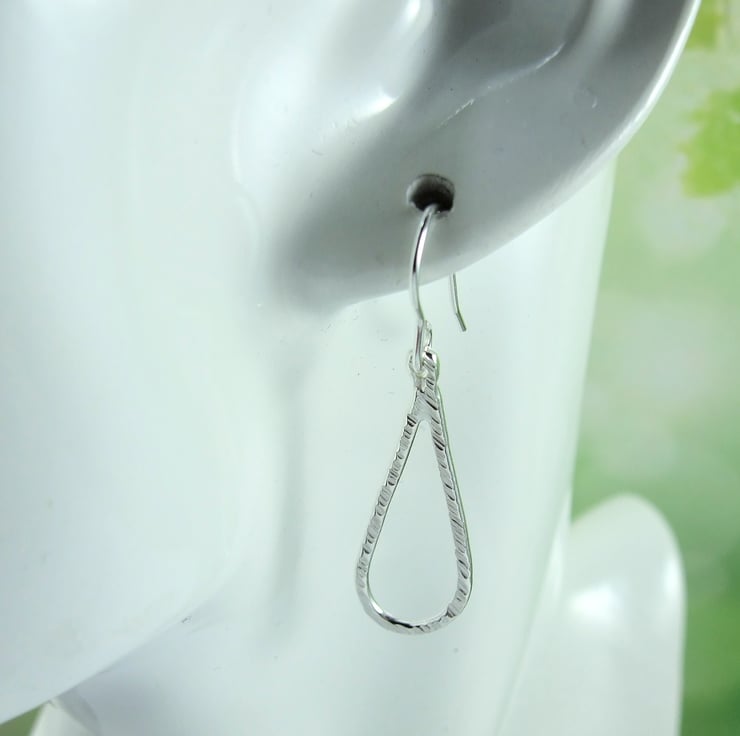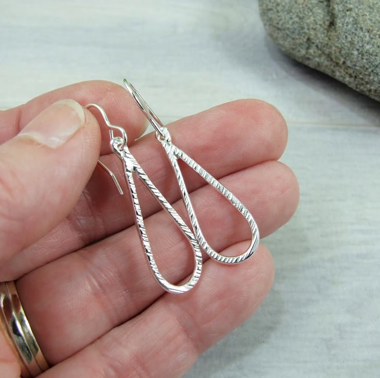Sterling Silver Line Textured Teardrop Earrings.