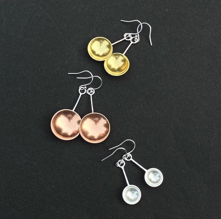 My spoon earrings and abstract spoon earrings are all inspired by my collection of spoons and some of my larger work. These spoon earrings are created from wire and sheet, hand formed and soldered together.