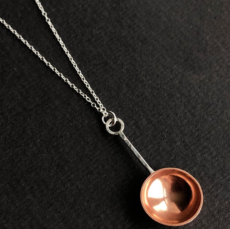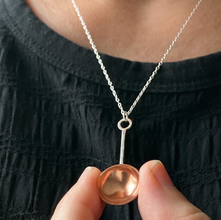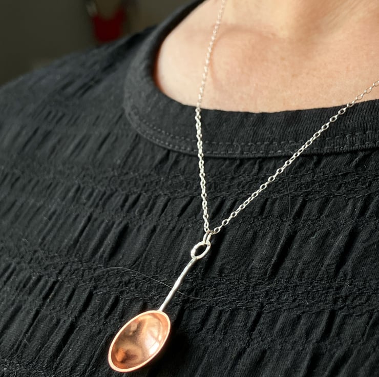 Sterling silver and copper spoon pendant on a silver chain. Beautiful, simple statement necklace.