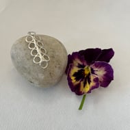 This fun pendant consists of 5 various sized circles made from 1.5mm sterling silver wire and then joined together and soldered in place.