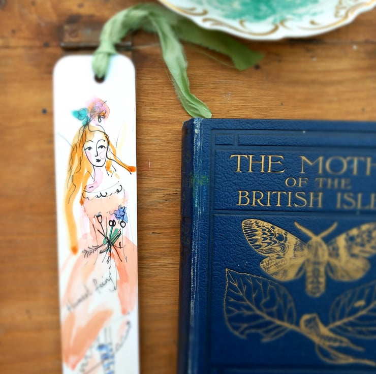 These are all individual. Hand drawn in Indian ink and painted with watercolours. So mini works of art. A simple gift to pop in a card or write a message on the back. With silk trim at the top. I also do personslised ones if you wish to have a name on them . X a gift for a nature and book lover x small gift to sit along side your favourite book. Comes thoughtfully wrapped.