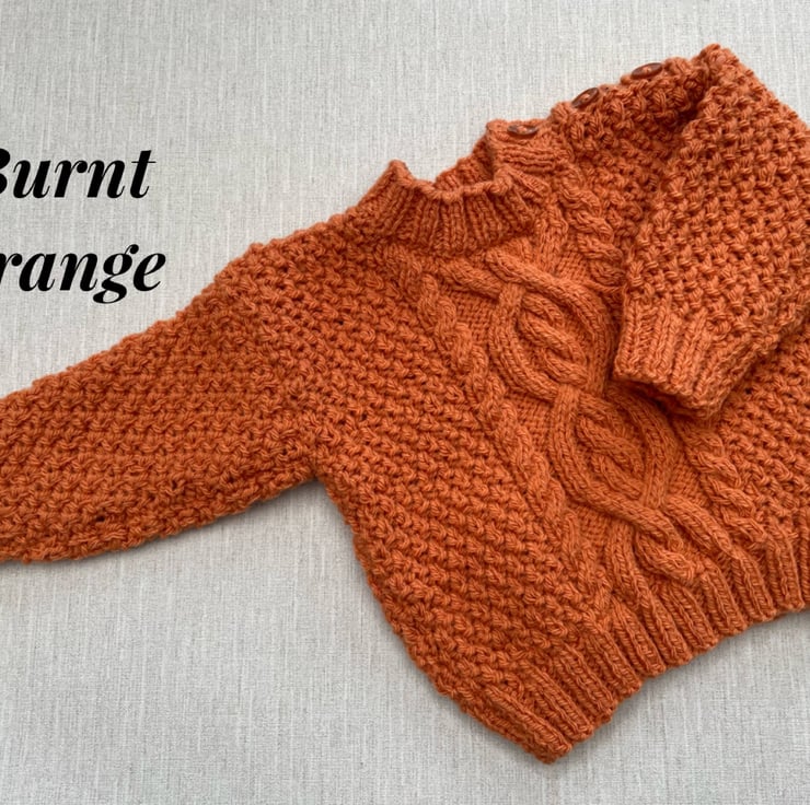 A beautiful hand knitted baby Aran sweater in a choice of sizes to fit 3 to 6 months of age baby.
